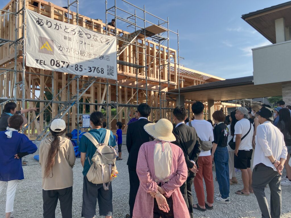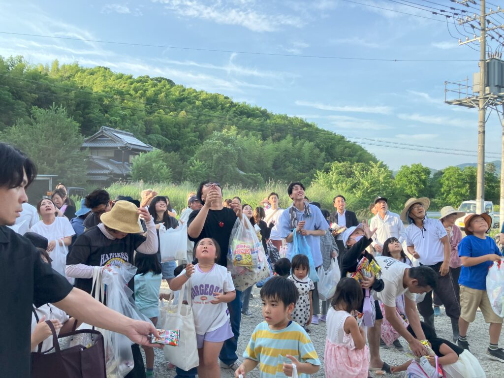 棟梁の祝詞のあとは日頃の感謝を込めて餅まきを開催させていただきました。