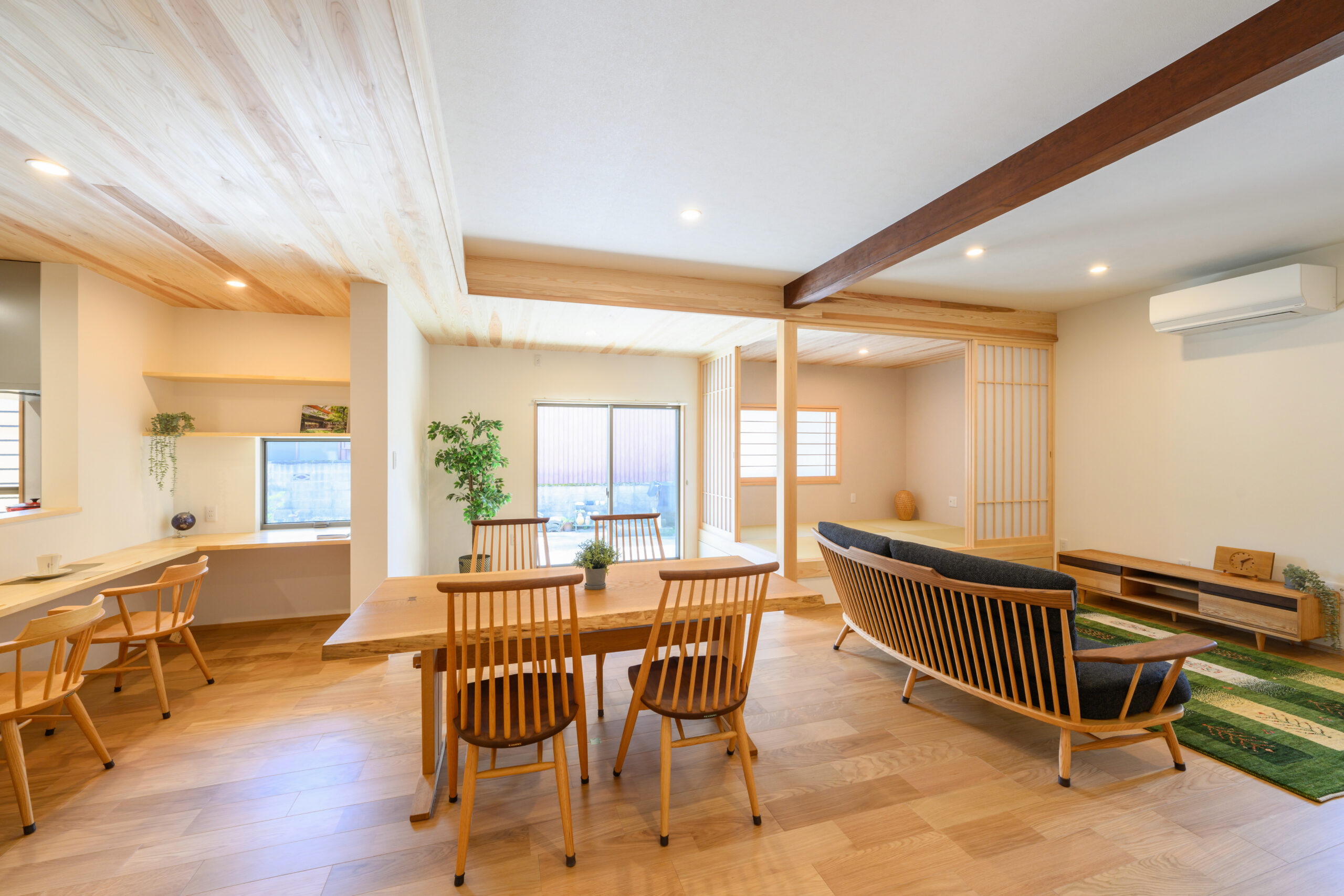 こちらの建物にあった簾戸を五右衛門風呂の出入り口に移設。新しいものだけでなく、大切に使われていたものを再度利用すると味わいがでます。